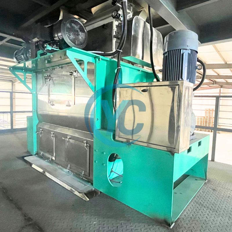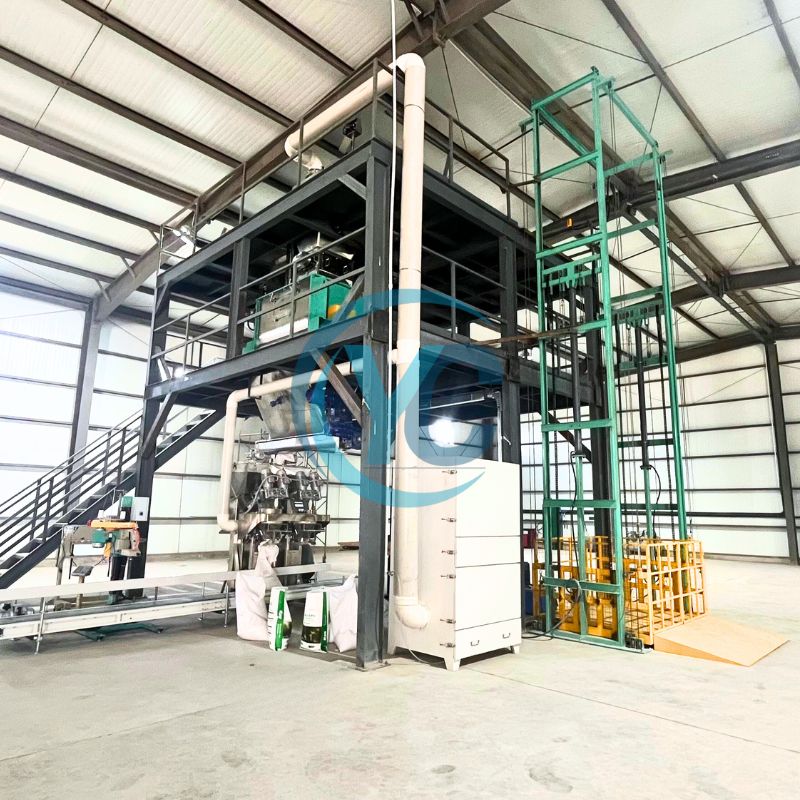 The production flow follows a top-down sequence, including manual feeding, crushing and mixing, and final packaging— ensuring smooth and efficient operation.